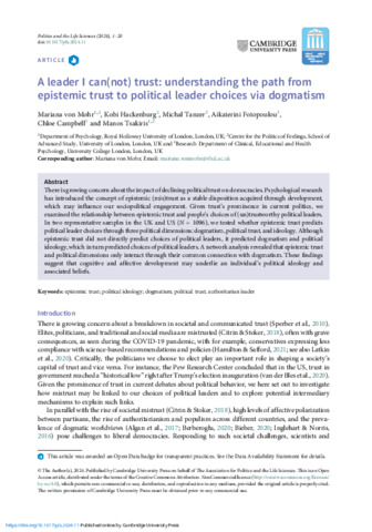 A leader i can(not) trust: Understanding the path from epistemic trust to political leader choices via dogmatism.