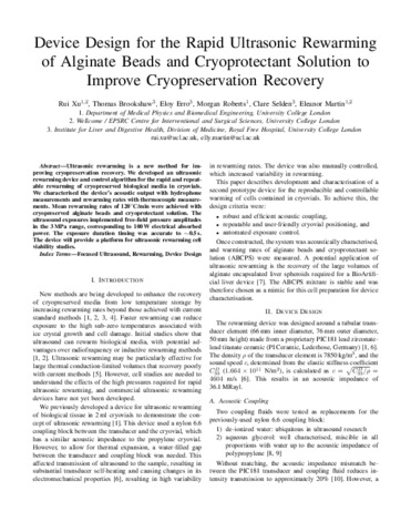 Device Design for the Rapid Ultrasonic Rewarming of Alginate Beads and Cryoprotectant Solution.pdf - Accepted Version Download (1MB) | Preview |