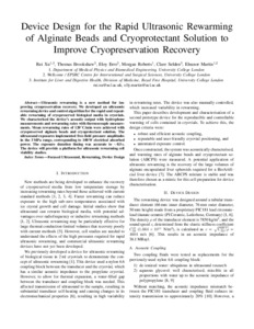 Title: | Device Design for the Rapid Ultrasonic Rewarming of Alginate Beads and Cryoprotectant Solution to Improve Cryopreservation Recovery |