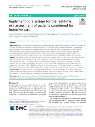 Implementing a system for the real-time risk assessment of patients considered for intensive care.pdf - Published Version Download (1MB) | Preview |