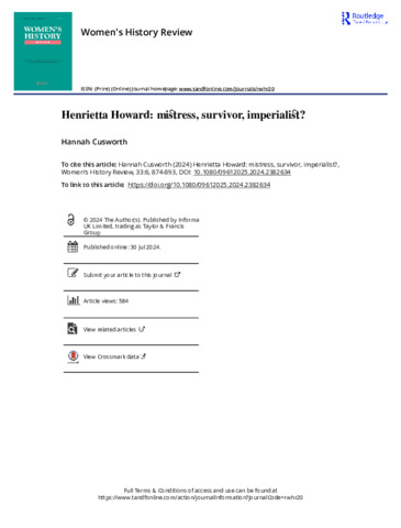 Title: | Henrietta Howard: mistress, survivor, imperialist? |