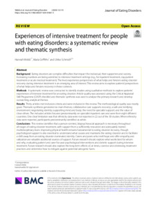 Title: | Experiences of intensive treatment for people with eating disorders: a systematic review and thematic synthesis |