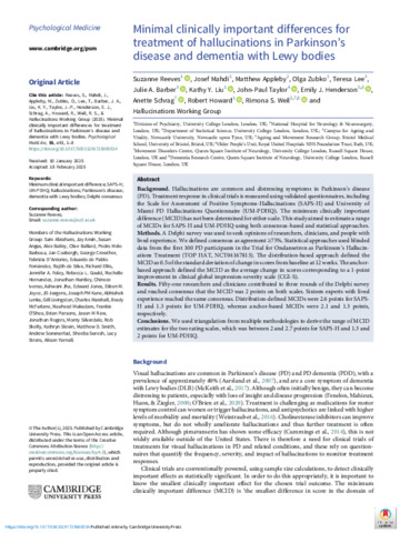Title: | Minimal clinically important differences for treatment of hallucinations in Parkinson’s disease and dementia with Lewy bodies |