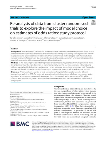 | Title: | Re-analysis of data from cluster randomised trials to explore the impact of model choice on estimates of odds ratios: study protocol |