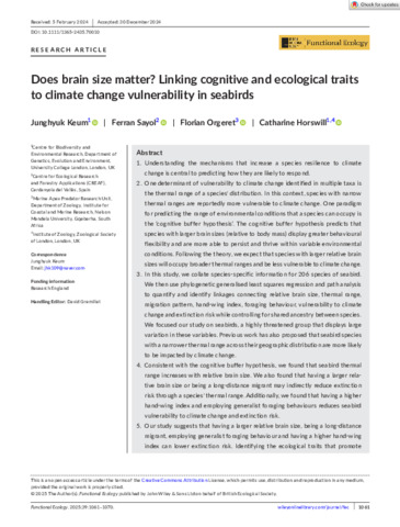 Title: | Does brain size matter? Linking cognitive and ecological traitsto climate change vulnerability in seabirds |