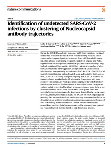 Title: | Identification of undetected SARS-CoV-2 infections by clustering of Nucleocapsid antibody trajectories |