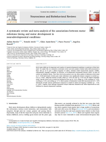 Title: | A systematic review and meta-analysis of the associations between motor milestone timing and motor development in neurodevelopmental conditions |
