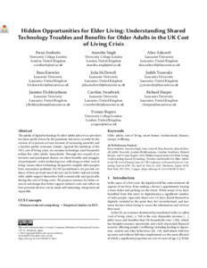 Title: | Hidden Opportunities for Elder Living: Understanding Shared Technology Troubles and Benefits for Older Adults in the UK Cost of Living Crisis |