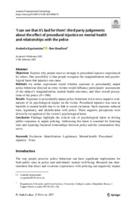 | Title: | 'I can see that it's bad for them': third party judgements about the effect of procedural injustice on mental health and relationships with the police |