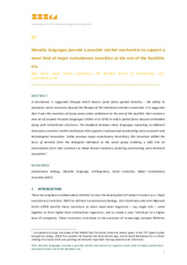 Title: | Morphic languages provide a possible ratchet mechanism to support a novel kind of major evolutionary transition at the end of the Neolithic era |