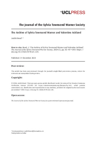 | Title: | The Archive of Sylvia Townsend Warner and Valentine Ackland |