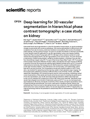 Title: | Deep learning for 3D vascular segmentation in hierarchical phase contrast tomography: a case study on kidney |