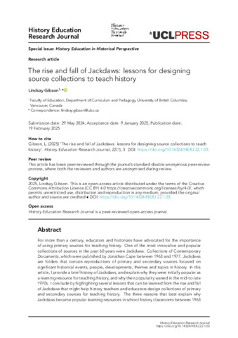 | Title: | The rise and fall of Jackdaws: lessons for designing source collections to teach history |