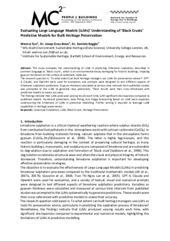 Title: | Evaluating Large Language Models (LLMs)' Understanding of ‘Black Crusts’ Predictive Models for Built Heritage Preservation |