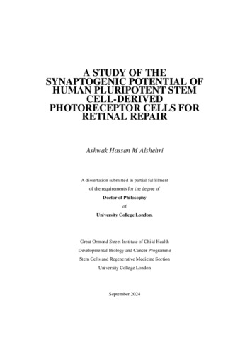 Title: | A study of the synaptogenic potential of human pluripotent stem cell-derived photoreceptor cells for retinal repair |