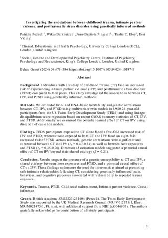 | Title: | Investigating the Associations Between Childhood Trauma, Intimate Partner Violence, and Posttraumatic Stress Disorder Using Genetically Informed Methods |