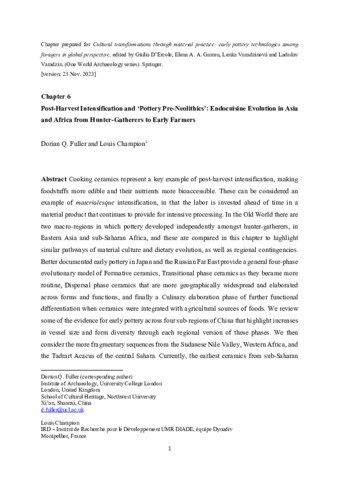 | Title: | Post-harvest Intensification and ‘Pottery Pre-Neolithics’: Endocuisine Evolution in Asia and Africa from Hunter-Gatherers to Early Farmers |