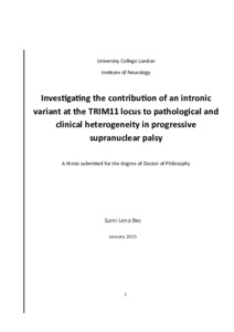 Title: | Investigating the contribution of an intronic variant at the TRIM11 locus to pathological and clinical heterogeneity in progressive supranuclear palsy |