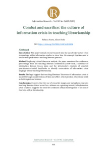 | Title: | Combat and sacrifice: the culture of information crisis in teaching librarianship |