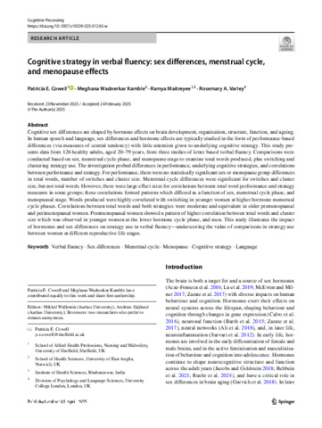 Title: | Cognitive strategy in verbal fluency: sex differences, menstrual cycle, and menopause effects |