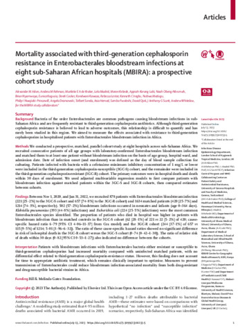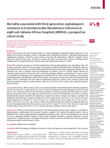 | Title: | Mortality associated with third-generation cephalosporin resistance in Enterobacterales bloodstream infections at eight sub-Saharan African hospitals (MBIRA): a prospective cohort study |