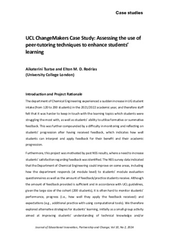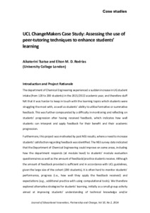 Title: | UCL ChangeMakers Case Study: Assessing the use of peer-tutoring techniques to enhance students’ learning |