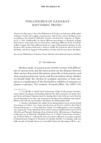 Title: | Philodemus of Gadara’s Rhythmic Prose |