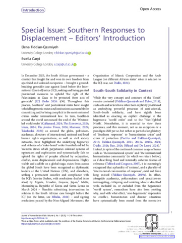 Special Issue: Southern Responses to Displacement – Editors’ Introduction.