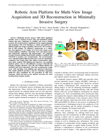 | Title: | Robotic Arm Platform for Multi-View Image Acquisition and 3D Reconstruction in Minimally Invasive Surgery |