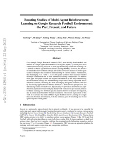 Boosting Studies of Multi-Agent Reinforcement Learning on Google Research Football Environment: the Past, Present, and Future.