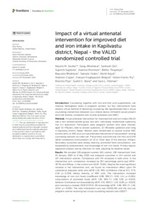Title: | Impact of a virtual antenatal intervention for improved diet and iron intake in Kapilvastu district, Nepal - the VALID randomized controlled trial |
