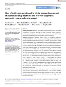 Title: | How effective are remote and/or digital interventions as part of alcohol and drug treatment and recovery support? A systematic review and meta-analysis |