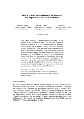 Title: | Structural Reforms and Economic Performance: The Experience of Advanced Economies |