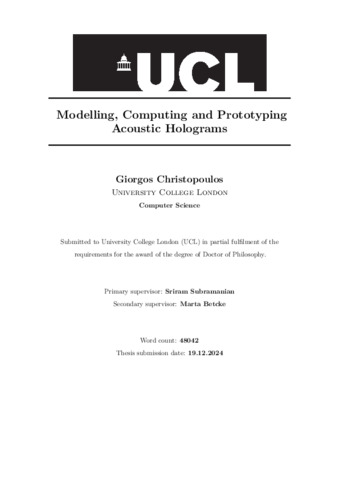 Modelling, Computing and Prototyping Acoustic Holograms.
