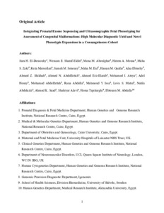 Integrating Prenatal Exome Sequencing and Ultrasonographic Fetal Phenotyping for Assessment of Congenital Malformations: High Molecular Diagnostic Yield and Novel Phenotypic Expansions in a Consanguineous Cohort.
