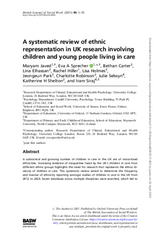 Title: | A systematic review of ethnic representation in UK research involving children and young people living in care |