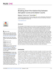 Breaking down the relationship between disruption scores and citation counts.pdf - Published Version Download (2MB) | Preview |