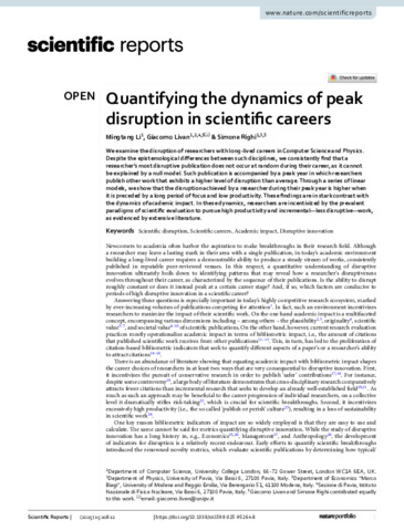 | Keywords: | Academic impact, Disruptive innovation, Scientific careers, Scientific disruption |