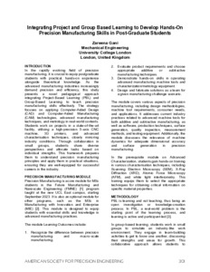 Title: | Integrating Project and Group Based Learning to Develop Hands-On Precision Manufacturing Skills in Post-Graduate Students |