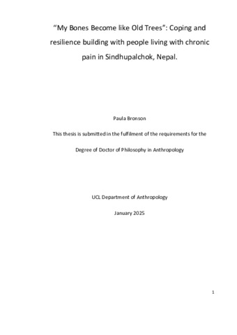 Title: | " My bones become like old trees": coping and resilience building with people with chronic pain in Sindhupalchok, Nepal |