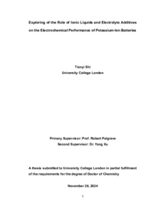 Exploring of the Role of Ionic Liquids and Electrolyte Additives on the Electrochemical Performance of Potassium-Ion Batteries.