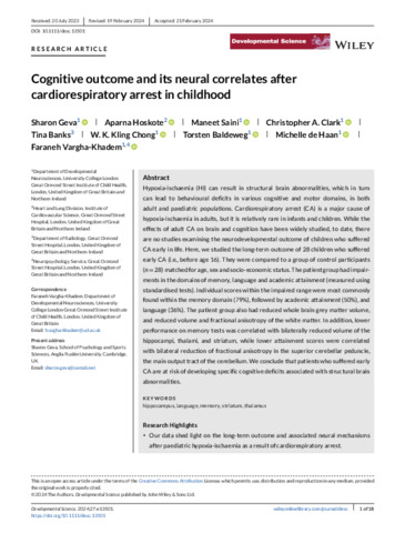| Title: | Cognitive outcome and its neural correlates after cardiorespiratory arrest in childhood |