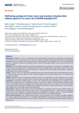 Well-being package for foster carers and teachers of looked-after children aged 8 to 11 years: the STrAWB feasibility RCT.