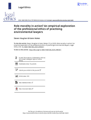 Title: | Role morality in action? An empirical exploration of the professional ethics of practising environmental lawyers |