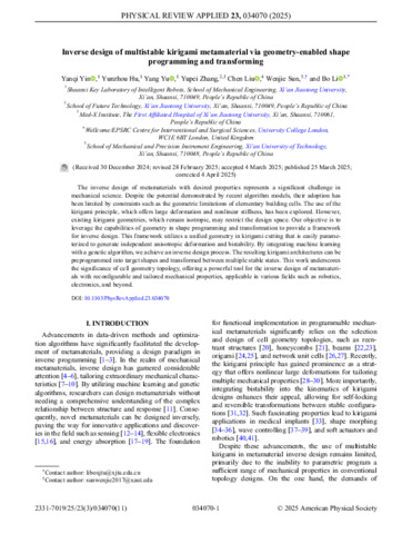 Title: | Inverse design of multistable kirigami metamaterial via geometry-enabled shape programming and transforming |