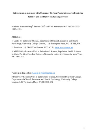| Title: | Driving user engagement with consumer carbon footprint reports: exploring barriers and facilitators via banking services |