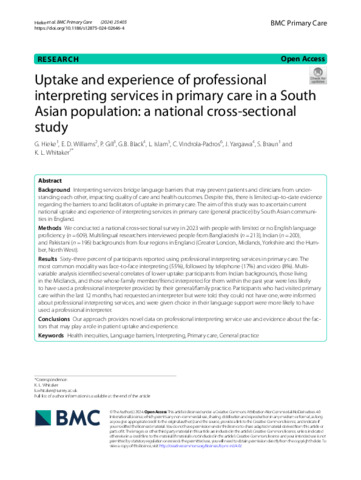 Uptake and experience of professional interpreting services in primary care in a South Asian population: a national cross-sectional study.