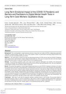 | Title: | Long-Term Emotional Impact of the COVID-19 Pandemic and Barriers and Facilitators to Digital Mental Health Tools in Long-Term Care Workers: Qualitative Study |