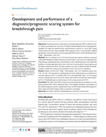 | Title: | Development and performance of a diagnostic/prognostic scoring system for breakthrough pain |