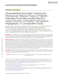 Characterizing Nonculprit Lesions and Perivascular Adipose Tissue of Patients Following Acute Myocardial Infarction Using Coronary Computed Tomography Angiography: A Comparative Study.